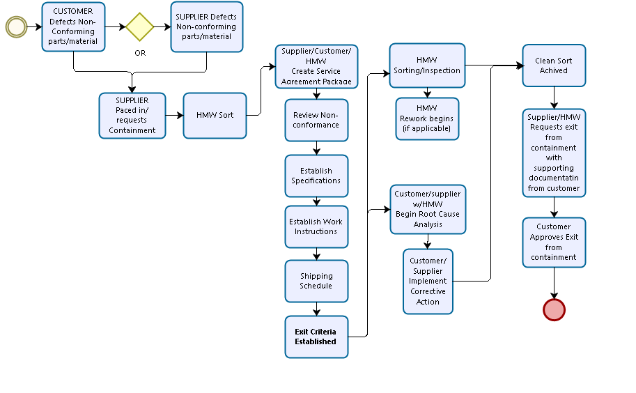 Containing non-conforming parts and implementing inspection and sorting to ensure defect-free parts/materials are properly identified and delivered to your customer.